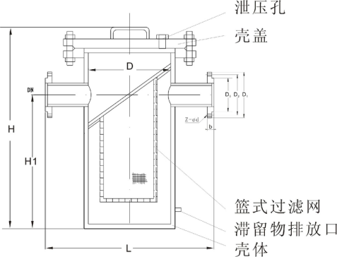 管道在安裝時會有其它雜物帶入管道,在生產中原材料中也含有雜物。管道里液體經過過濾器時它的污物由過濾器收藏到濾網中,在一定的程度時通過泄壓孔泄壓,以達到輕松打開殼蓋清理濾網即可,并可通過滯留物排放口對殼體進行清理。