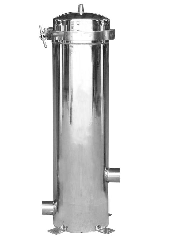 袋式過(guò)濾機(jī)是一種壓力式過(guò)濾裝置,主要有過(guò)濾筒體、過(guò)濾筒蓋和快開(kāi)機(jī)構(gòu)、不銹鋼濾袋加強(qiáng)網(wǎng)等主要部件組成,濾液由過(guò)濾機(jī)外殼的旁側(cè)入口管流入濾袋,濾袋本身是裝置在加強(qiáng)網(wǎng)籃內(nèi),液體滲透過(guò)所需要細(xì)度等級(jí)的濾袋即能獲得合格的濾液,雜質(zhì)顆粒被濾袋攔截。該機(jī)更換濾袋十分方便,過(guò)濾基本無(wú)物料消耗。